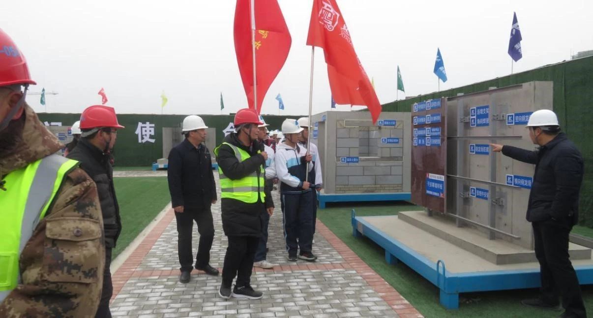 隨后大家來到質(zhì)量樣板展示區(qū)及安全生產(chǎn)體驗(yàn)區(qū)進(jìn)行觀摩、體驗(yàn),在質(zhì)量樣板展示區(qū),詳細(xì)講解了我公司質(zhì)量管理標(biāo)準(zhǔn)化施工及樣板引路的質(zhì)量管理理念,重點(diǎn)介紹了我公司在BIM技術(shù)應(yīng)用、新技術(shù)新工藝應(yīng)用、安全文明及綠色施工等方面的精細(xì)化管理以及取得的成績,表示公司將繼續(xù)以高質(zhì)量、高品質(zhì)、高效率完成息縣高級(jí)中學(xué)建設(shè)工作的決心。